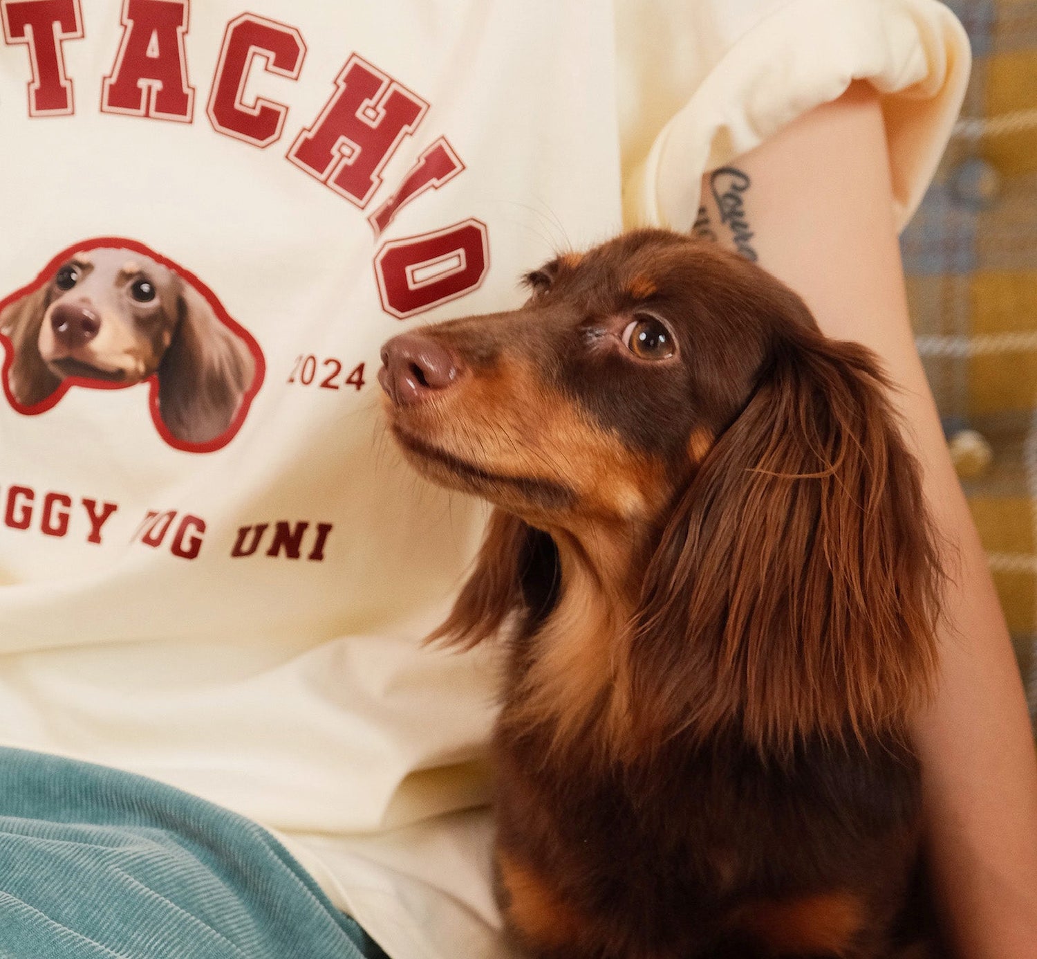 It’s our favourite kind of tee—100% heavyweight cotton, soft but structured, with that perfectly relaxed fit! Our design? Your pup’s face, plus their “Class [Birth Year]”—because every dog deserves their own college yearbook moment. For us humans? It's the most charming family (or couple) outfit ever!